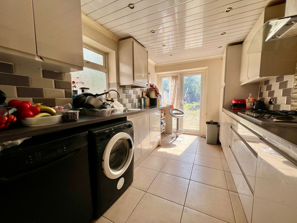 Entering through a warm hallway, you're welcomed into a spacious through lounge and separate dining room—an ideal setup for flexible family living or entertaining. The fitted kitchen at the rear offers practical workspace and direct access to the large rear garden, a perfect canvas for family gatherings or future extension (STPP).